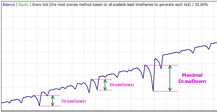 Maximal drawdown สามารถใช้เป็นตัวกำหนดเงินทุนที่จะลงเมื่อทำการ trade ด้วย EA เพื่อป้องกันการโดนลากจนหมด port